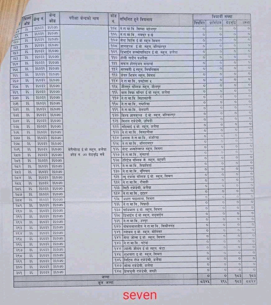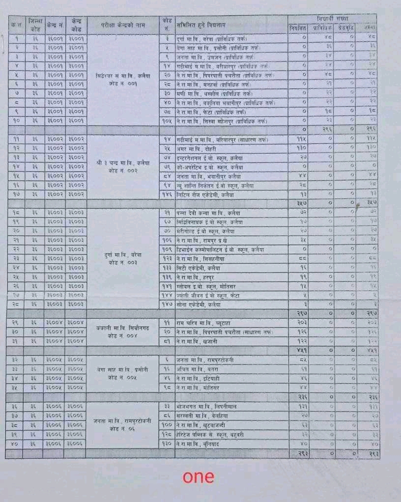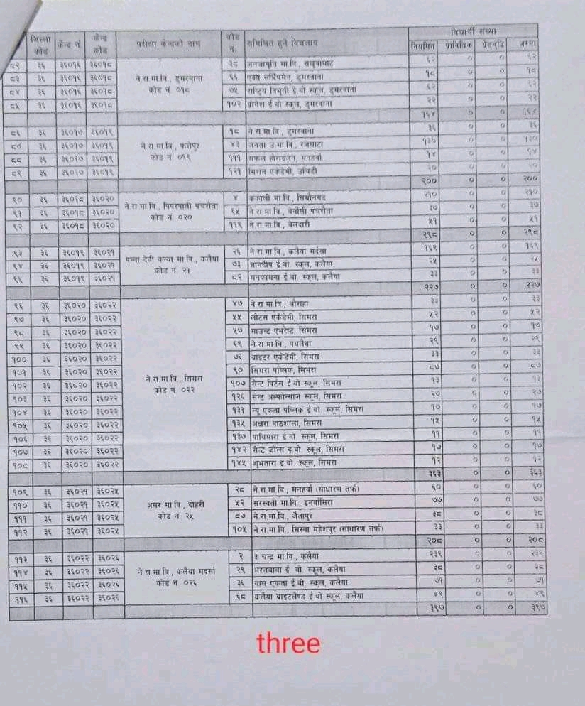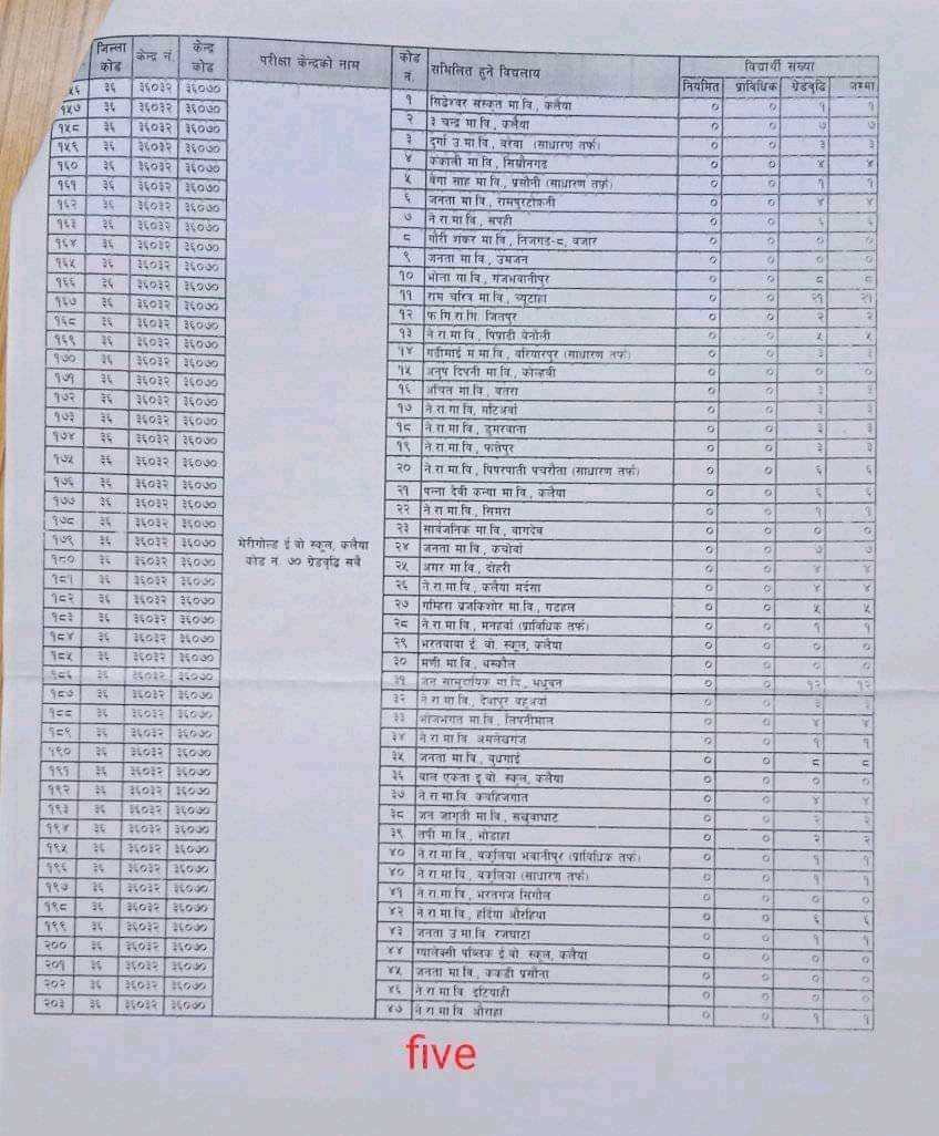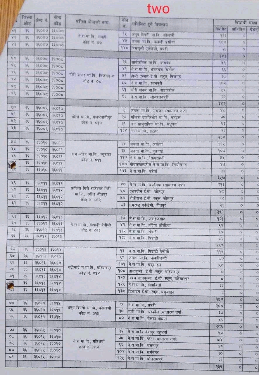 शिक्षा विकास तथा समन्वय इकाई बाराले सूचना प्रकाशन गर्दै कुल ३०१ परीक्षा केन्द्र तोकेको जनाएको छ ।