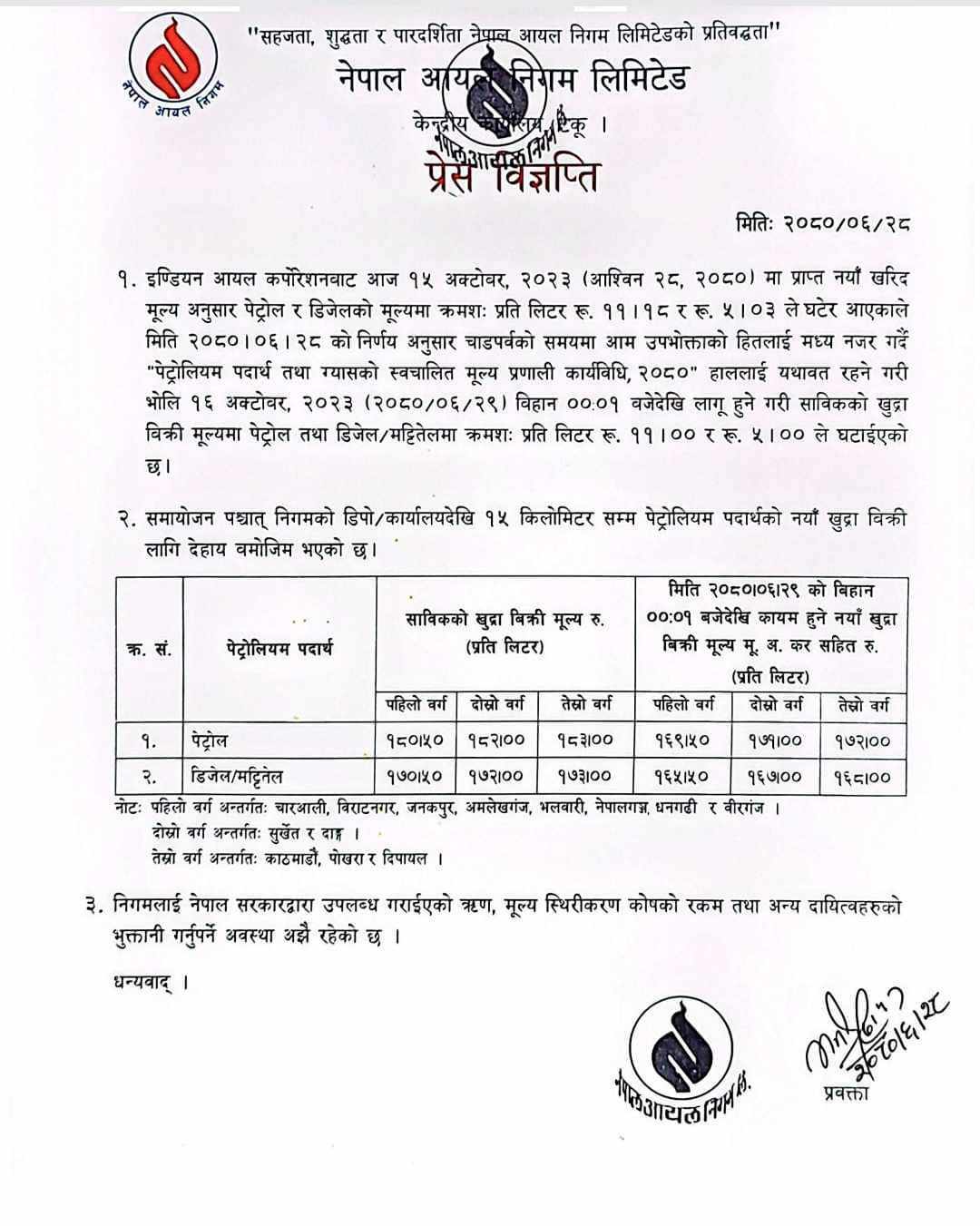 भारतीय आयल कर्पोरेसन (आईओसी)बाट घटेर नयाँ मूल्य प्राप्त भएका कारण मूल्य समायोजन गरिएको निगमले जनाएको छ ।