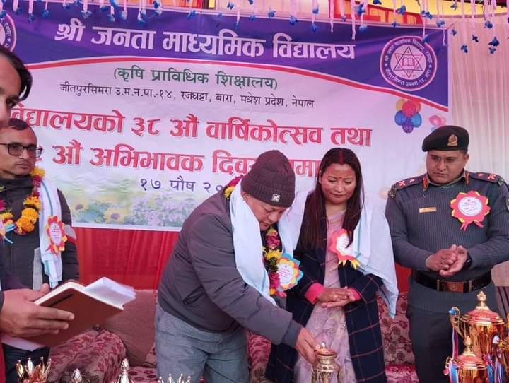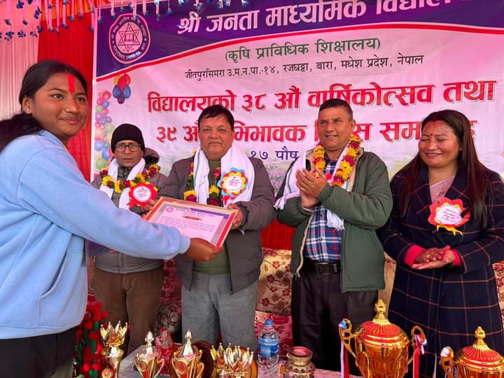 बारा-बाराकाे जीतपुरसिमरा उपमहानगरपालिका १४ रजघट्टास्थित जनता माध्यमिक विद्यालय तथा कृषि प्राविधिक शिक्षालयले मंगलबार ३८ औं विद्यालय वार्षिकोत्सव तथा ३९ औं अभिभावक दिवस मनाएको छ ।
