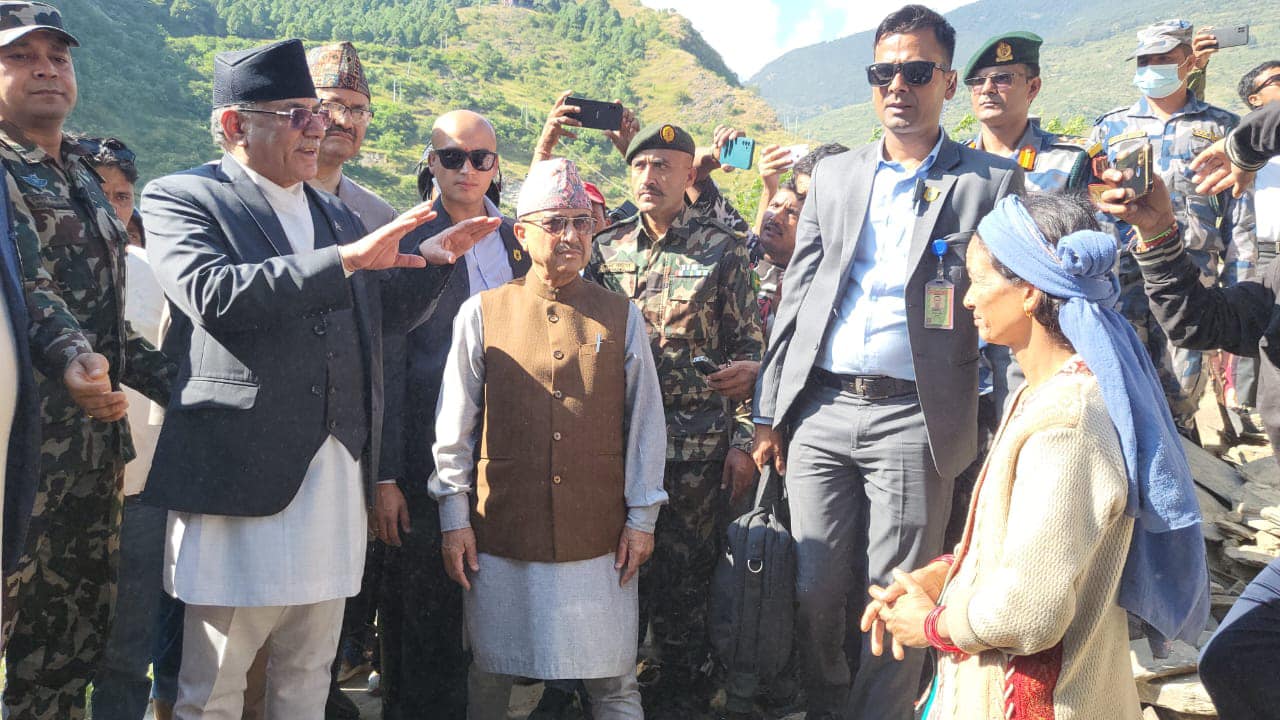 भूकम्प प्रभावित क्षेत्रको स्थलगत अवलोकन गर्दै प्रधानमन्त्री प्रचण्डले भूकम्प प्रभावितको घर बनाइदिने आश्वासन दिएका छन् ।