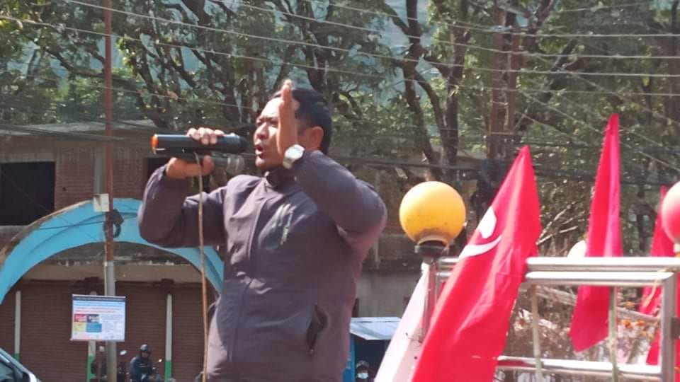 कार्यक्रममा नेपाल कम्युनिस्ट पार्टीका जिल्ला सेक्रेटरी खेम घर्ति मगरले बर्तमान गठबन्धन सरकारले एमसीसी सम्झौता संसद्बाट अनुमोदन गर्ने प्रयास गरेर नेपालको राष्ट्रिय स्वाधीनता माथि निर्मम प्रहार र दुस्साहस गरेकाले प्रत्येक नेपाली यसको विरोध गनुपर्ने बताउदै नेपालको सबिधान र आफ्ना नागरिक भन्दा एमसिसि माथि हुन नसक्ने बताउदै यसको प्रत्येक नेपालीले विरोध गनुपर्ने बताए ।