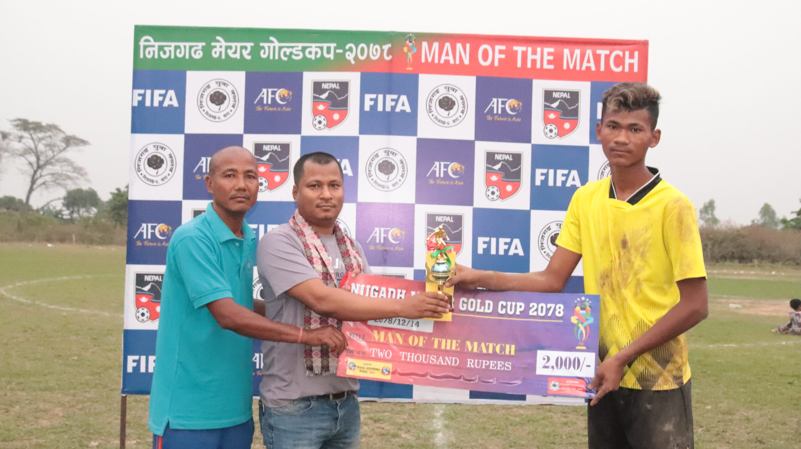 खेलको म्यान अफ द म्याच बारा एघारका गोलरक्षक राजिब चौधरी घोषित भए । म्यान अफ द म्याच घोषित चौधरीले दुई हजार रुपैंया प्राप्त गरे ।
