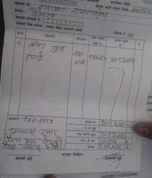 किताब छाप्नका लागि प्रतिकिताब एक हजार तीन सय ४५ का दरले तीन लाख नौ हजार तीन सय पचास रुपैयाँ भुक्तानी गरेको पाइएको हो ।
