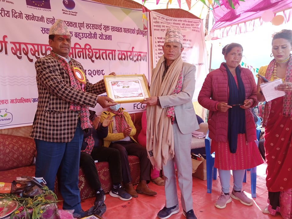 कार्यक्रममा जलस्रोत कर्मचारीलाई प्रशंसा पत्र र मायाको चिनो सम्मान गरिएको थियोे भने जनप्रतिनिधि पत्रकार शिक्षकलाई मायाको चिनोले सम्मान गरिएको थियोे ।