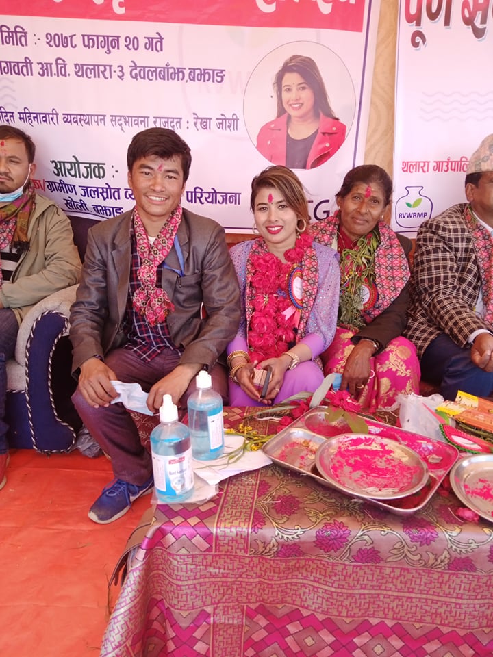 महिनावारी अव्यवस्थित हुँदा महिलाहरूले विभिन्न खालका समस्या र पीडाहरू झेल्नुपरेको बताउदै लोक तथा देउडा गायिका एवम् सुदूरपश्चिम मर्यादित महिनावारी व्यवस्थापन सद्भावना राजदूत रेखा जोशीले महिनावारीलाई व्यवस्थित बनाउनुपर्ने र महिनावारी हुँदा महिलाहरूले भोक्दै आएका समस्याका बारेमा सांगीतिक कोसेली प्रस्तुति गर्नु भएको थियोे ।