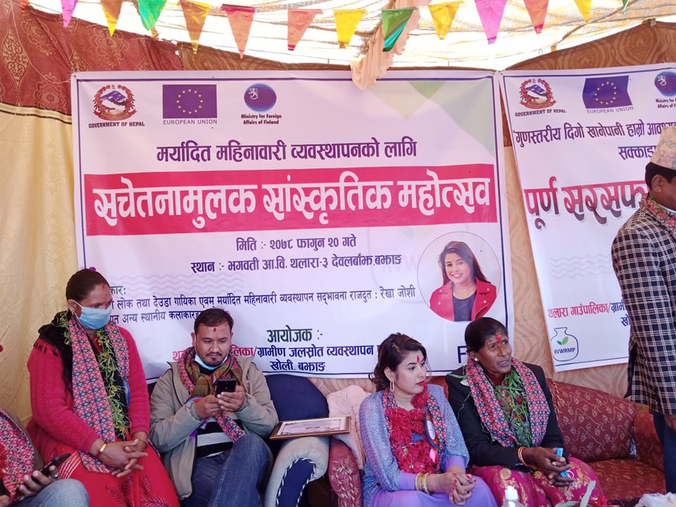 शुक्रबार भगवती आधारभूत विद्यालयमा मर्यादित महिनावारी व्यवस्थापनको लागि सचेतनामुलक साँस्कृतिक महोत्सव थलारा गाउँपालिका ग्रामीण जलस्रोत व्यवस्थापनको आयोजनामा महोत्सव भएको हो ।