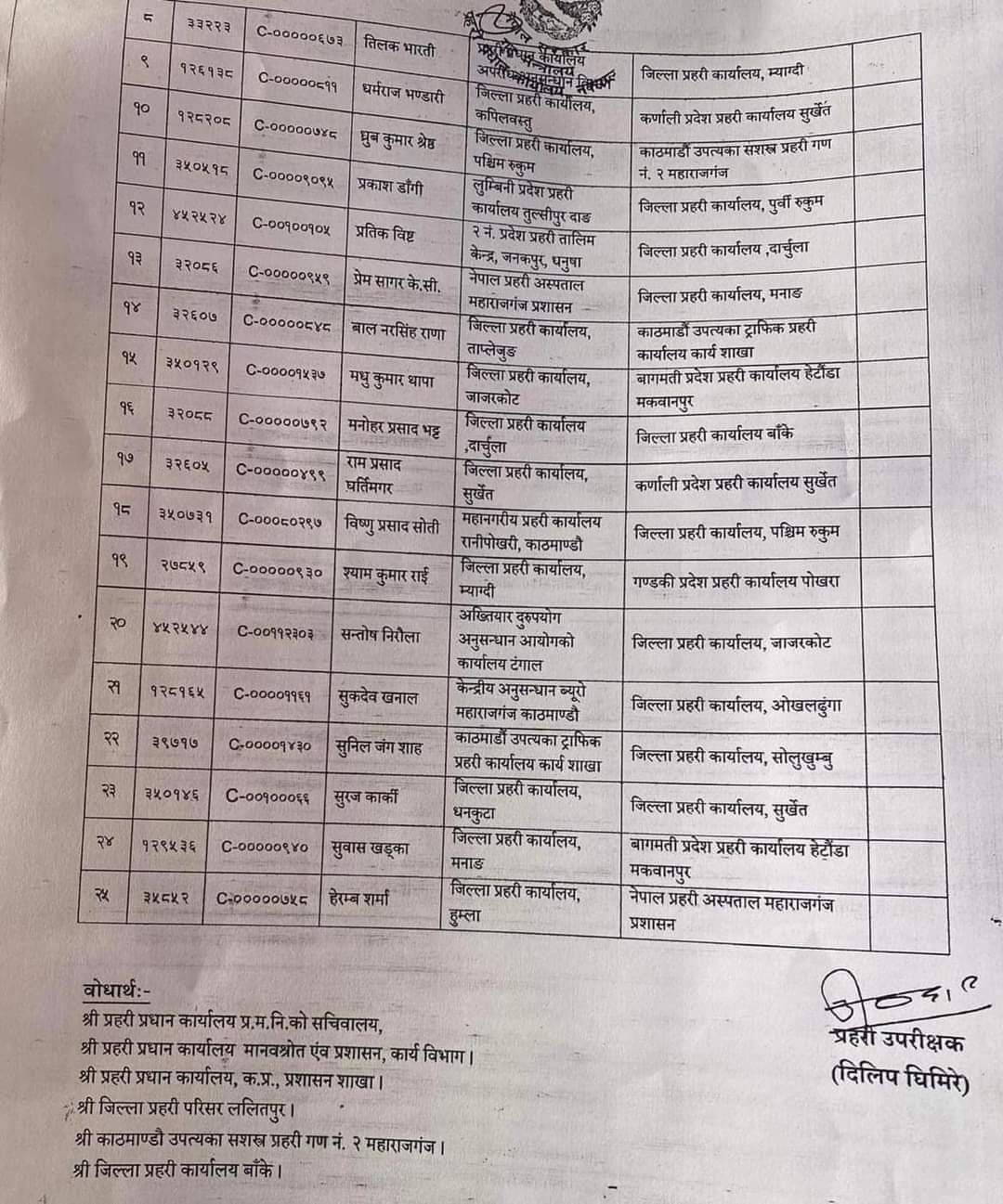 २५ जना डीएसपीहरुको काज सरुवा, १० जिल्लाका डिएसपी फेरिए (सूची)